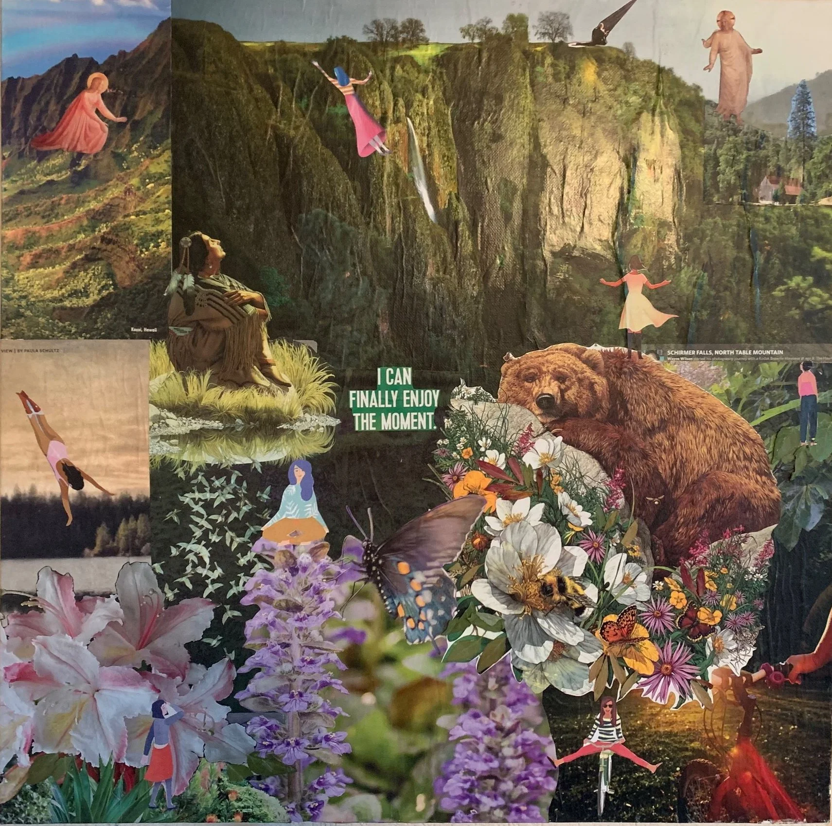 Collage is one fabulous modality that I utilize in processing and transforming trauma. I find images speak so clearly and express both conscious thoughts and those hidden aspects of the unconscious. The Tarot is another realm of symbols that opens up the unconscious’ wealth of wisdom. The major arcana in Tarot walk us through a story of meeting ourselves and our powers in this world of creation. Both collage and Tarot are sources of moving out of predictability and order and into the mystery of emotional connection and spiritual vision.